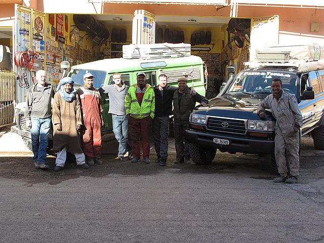 < Start | < Back | Overview | Next > | End > ©Copyright 2003 by A.Hüsler,CH-8320 Fehraltorf 2013-01-02 11:41:04 Maroc / Zagora Am Morgen nach dem Reparaturtag zum Abschied noch einen Tee und die obligaten Fotos. |